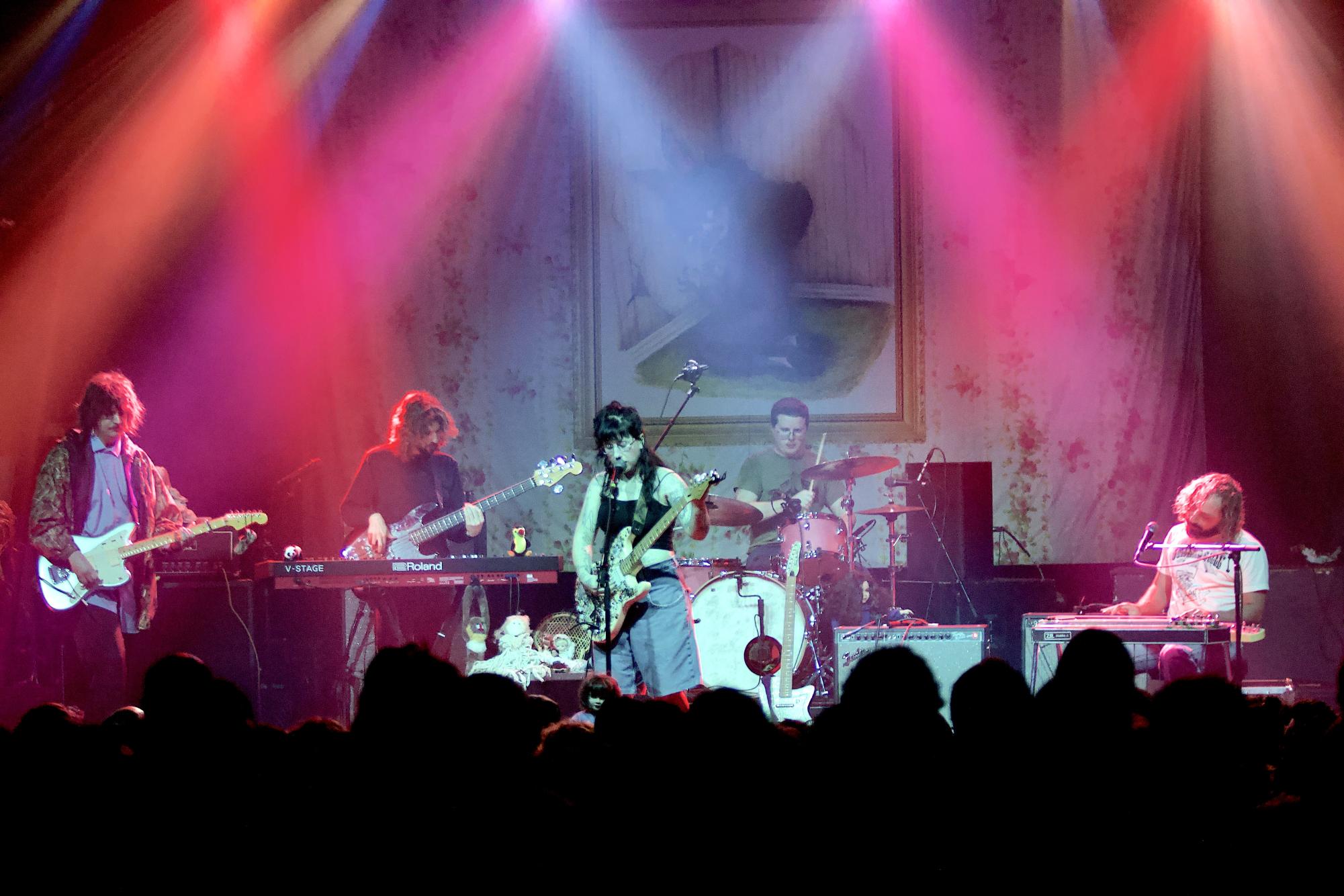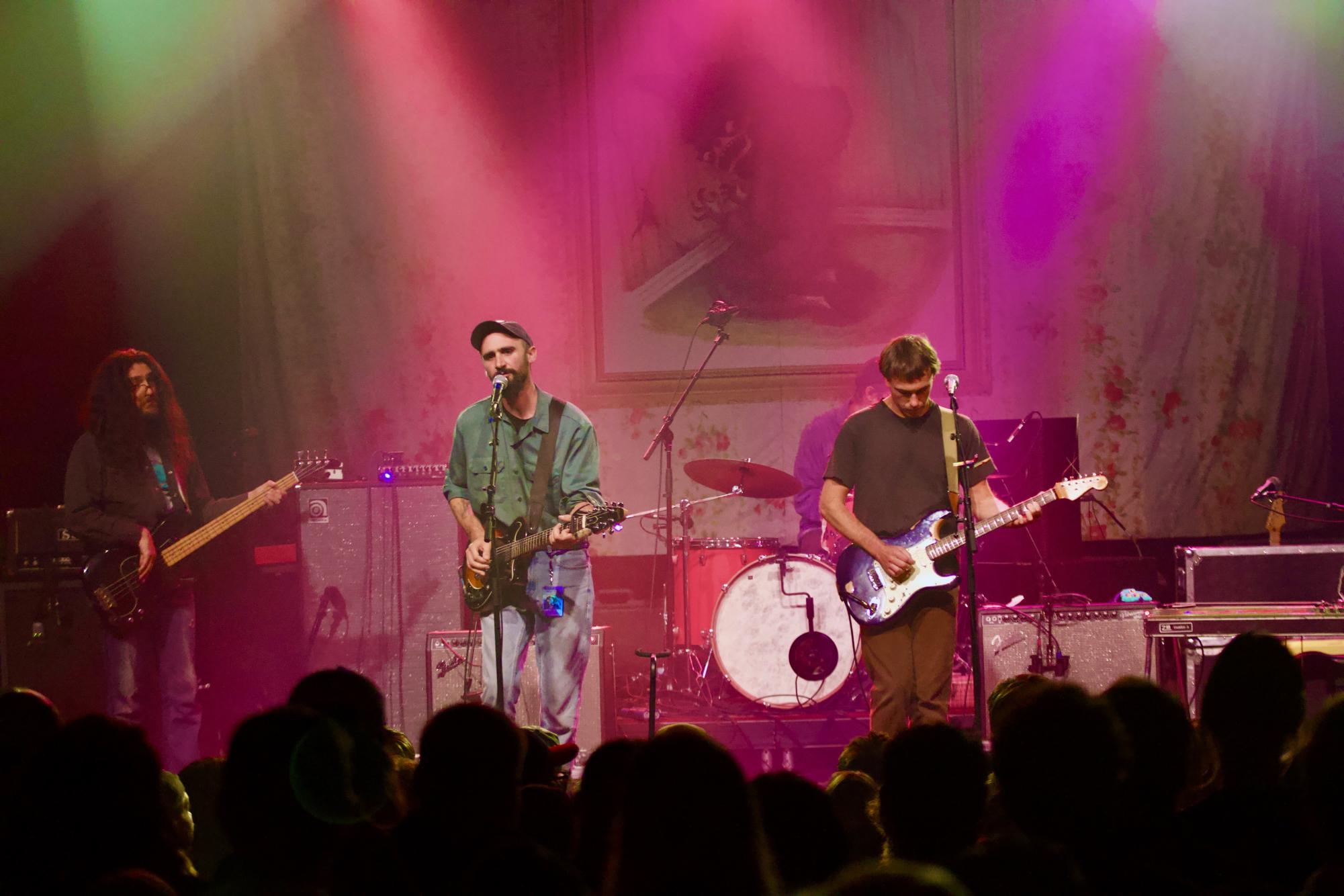 After Friendship’s set came to an end, the audience’s excitement grew in anticipation of Karly Hartzman, frontwoman of Wednesday, taking the stage. “Bleeds” is the group’s first release since announcing the departure of MJ Lenderman from the live band. This announcement came after Hartzman and Lenderman’s breakup, leaving much room for speculation of possible drama and resentment. These rumors were quickly put to bed as all parties announced the split ultimately came from scheduling issues since Lenderman was touring with his solo music and his band The Wind. Additionally, the fact that Lenderman still recorded in studio for the album, and frequently tours with Wriggins of Friendship indicated peace among all involved. Between sets, the crew began adorning the stage with dolls and stuffed animals. This imagery plays into the “Bleeds” album cover art of an illustrated creature that looks like it came straight out of a children’s book.