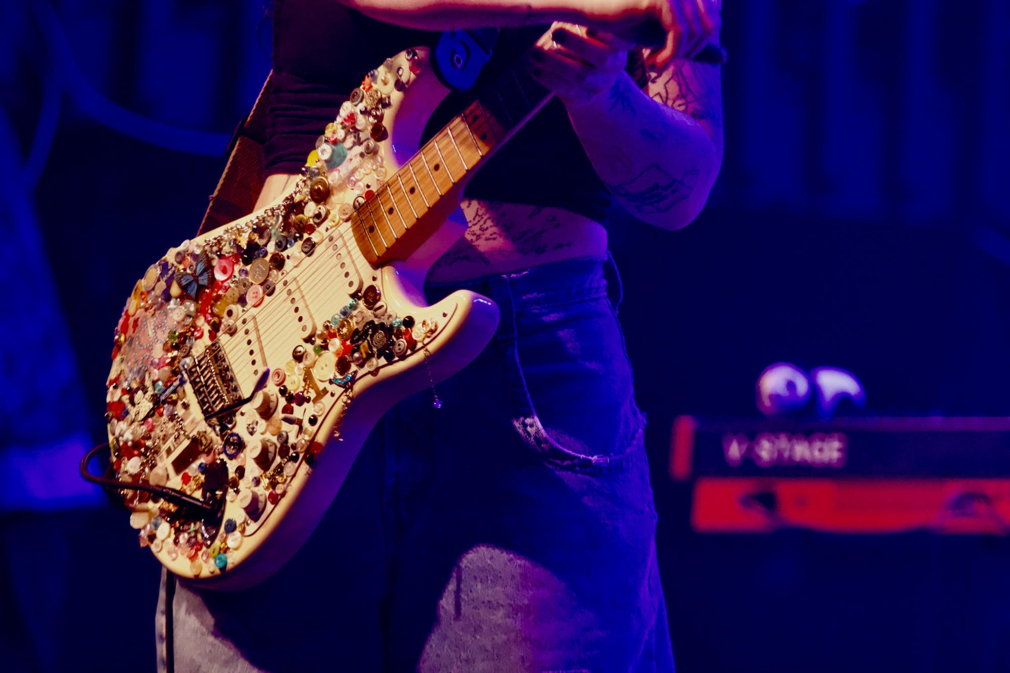 As Wednesday took the stage, you could feel a focus in the room, nobody could take their eyes away from Hartzman and her guitar decorated with buttons. They started the set with the album’s opening track “Reality TV Argument Bleeds”, setting the tone for the pensive nature of the album. They continued to move through their setlist while announcing some songs’ backstories every now and then. We got insight into the lore behind “Gary’s II” being about a friendly landlord, “Townies” being based on the people of Greensborough, North Carolina, and a fan in Oakland shaving their head to convince the band to add a song to the setlist that they hadn’t yet practiced. They also played the song “Phish Pepsi”, a tune with a more jaunty sound poking fun at the jam band being mentioned in the title. Hartzman also took an opportunity to encourage the audience to save their moshing energy until the end of the show for their more aggressive tracks. She also stressed that the band does not come back for an encore, so the final few songs were the last opportunity to leave it all on the floor. These last songs included “Bull Believer” from the group’s 2023 album “Rat Saw God”. This song is an 8-minute chronicle of the pain that comes with witnessing someone you care for become a victim of their vices. The song then shifts into anger, expressing resentment at this person as Hartzman screams “finish him” over and over, a reference to the game Mortal Kombat that is mentioned earlier in the song. Before the song began, Hartzman invited the audience to scream with her. At the end of the track this offer was certainly taken up as the voices filled the room while the song crescendoed. The final song the band played was “Wasp”, the closing track of their latest album. This track is short in length but powerful in sound, the crowd took the opportunity to mosh one last time and the band left the stage, leaving the audience electrified.